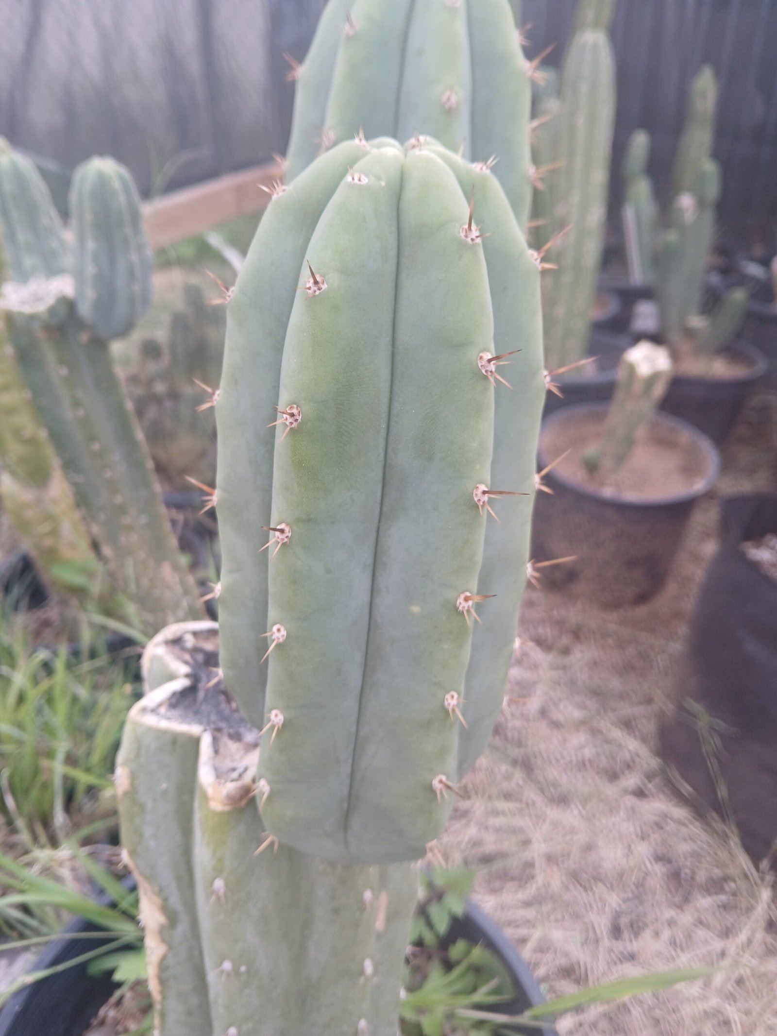 The “Landfill” cactus isn’t an ancient species but a popular, resilient cultivar (clone) of the (Echinopsis pachanoi or Trichocereus pachanoi), known for its widespread distribution, often surviving in seemingly tough urban spots like landfills or neglected yards, making it a common, easy-to-grow, pale green cactus valued by collectors for its ornamental traits. Its name reflects its hardy, ubiquitous nature, spreading like weeds from cuttings taken from overlooked locations.